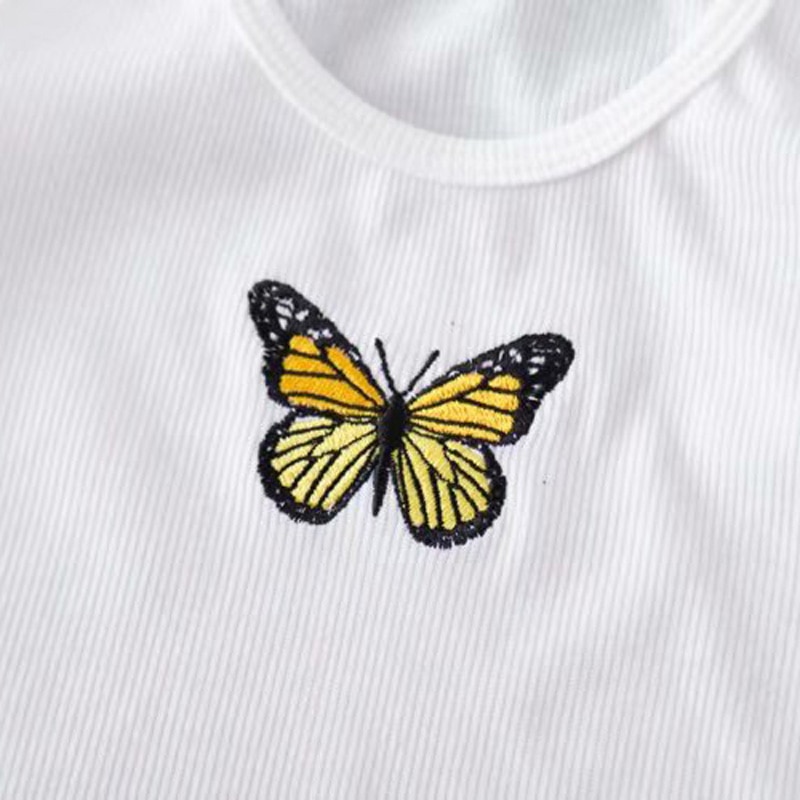 Sexy butterfly embroidery Women Streetwear Summer Cropped